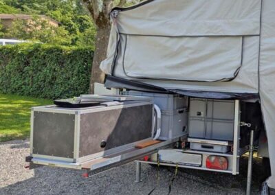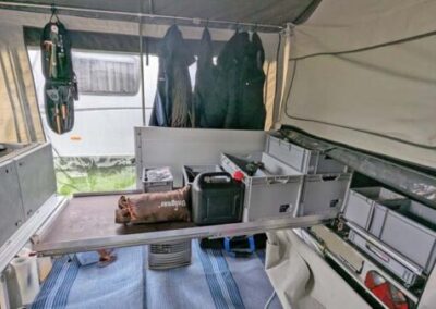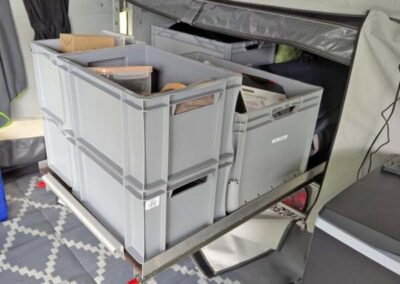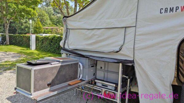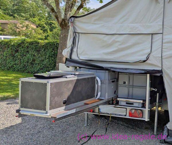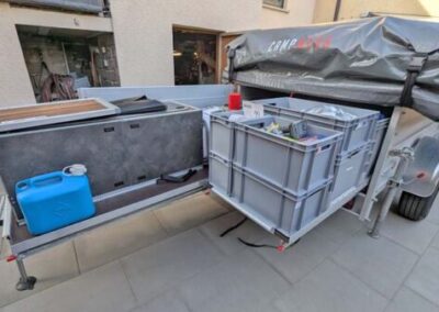 Hier durften wir in einem Campwerk Zeltanhänger einen langen Bodenauszug einbauen.