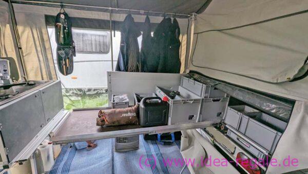 Campwerk Family Zeltanhänger Bodenauszug 185 cm Fixierungsrahmen Campwerk Family Zeltanhänger Bodenauszug 185 cm mit Brett auf 190 cm Verlängert. 160 kg Traglast Lock in Lock out Verriegelung