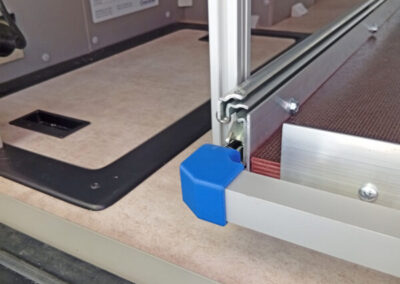 um die Gleitsteine zur Befestigung der Stützen einschieben zu können, wurde diese auf einer Seite auf geflext. Die schwarzen Endkappen an der Zurrschienen sind leider verklebt.