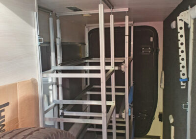 Hier wurde ein abenteuerliches Regalsystem in einem Wohnmobil ausgebaut und gegen eines von IDEA ersetzt. – Wurde unserem Kunden vor einem Jahr von einem Händler eingebaut. Er war damit aber nicht zufrieden (kein IDEA-Regal) Bei dem hinteren Steher war der Schraubteller los – Am Innenwinkel hat sich die Wurm / Madenschraube gelockert – Der Rahmen driftete auseinander – An den Stützen waren Gusswinkel gebrochen – Hier waren Gusswinkel gebrochen. Laut Hersteller sind diese Winkel nicht für hohe Druckbelastung (Gewicht) ausgelegt.