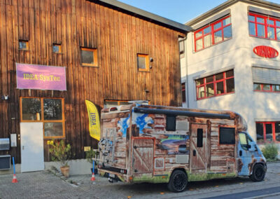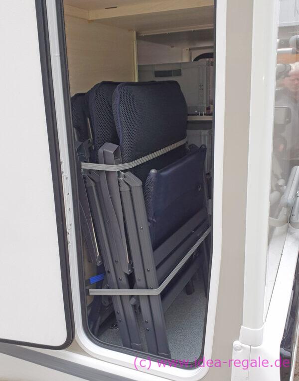 Chausson 620 - Der Kunde hat keinen passenden Fahrradträger für seine Heckgarage gefunden. Mit einem speziellen PP-MT kann er nun seine Räder bequem einstellen und sichern.