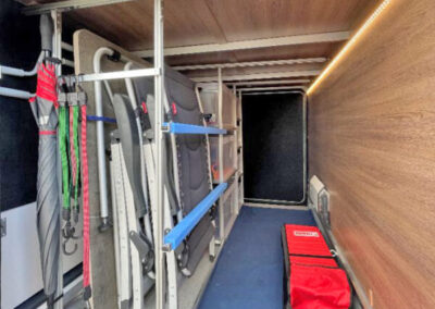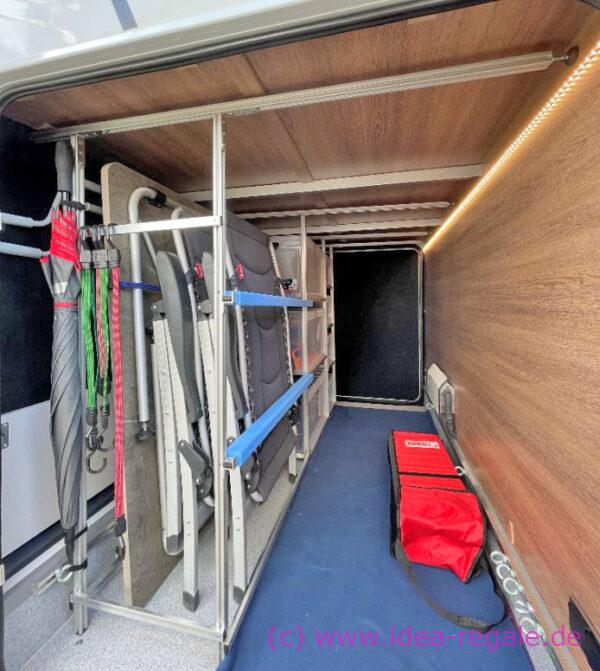 Dethleffs Globebus T 6 Kundenfoto - Varioregal mit Camp-Anbau und Gerätehalter am Regal