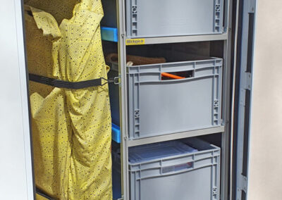 Boxenregal mit Entnahme der Boxen zur Türe hin