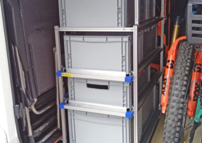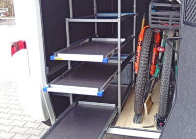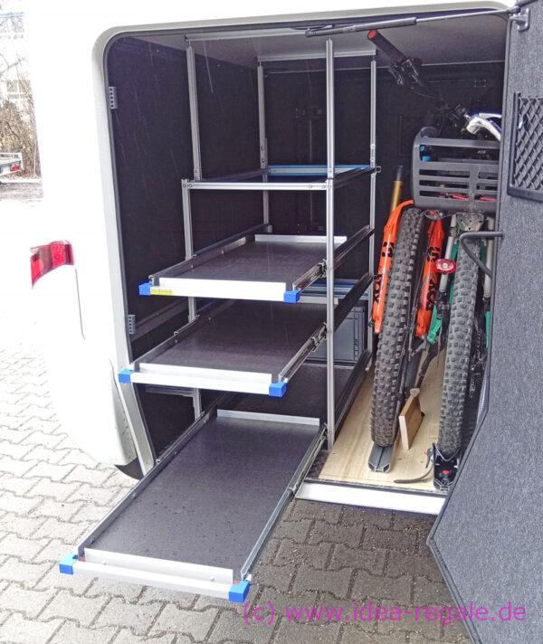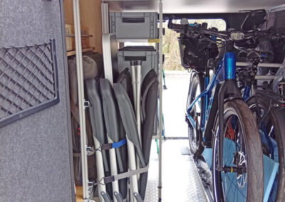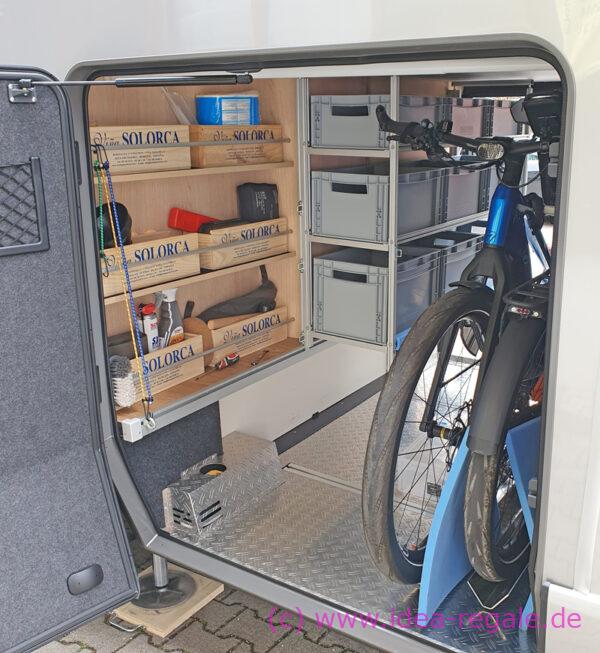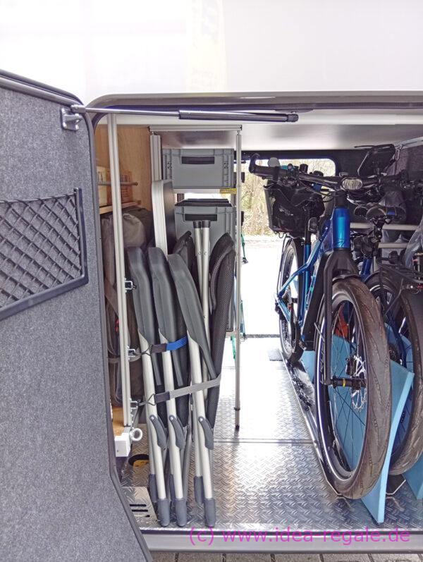 Boxenregal, Gerätehalter und CSL für Tisch und Stühle im Hymer B ML 780 oder 880 und Thule Velo-Slide