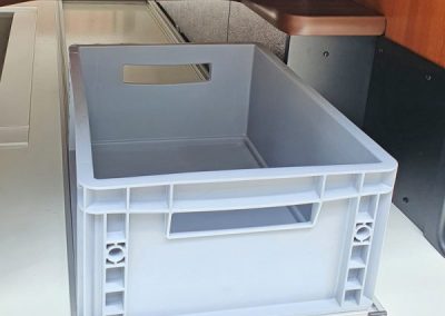Für niedrige Stauräume wo ein Auszug durch die geringe Höhe von 20 cm nicht realiesierbar ist - die Boxen werden mit der Hand durchgeschoben.