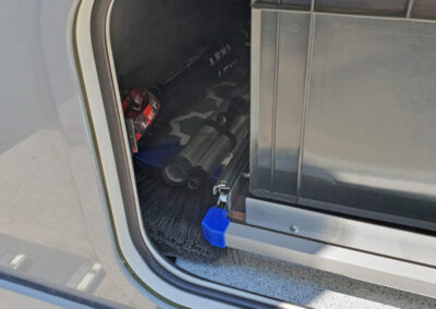 Hier wurden zwei unterschiedliche Pedi-Packer-Fahrradträger eingebaut. Für die Carbon-Rennräder ein MT-Mittelträger und für die MyVelo mit den 12 cm breiten Reifen unsere versetzte Version. Dieser wird ab und an herausgenommen um einen Roller mitnehmen zu können.