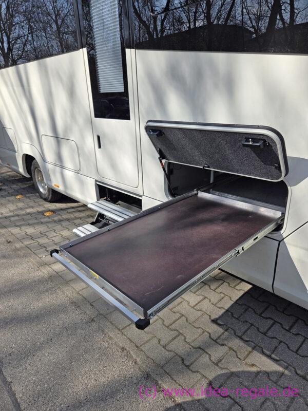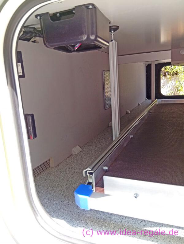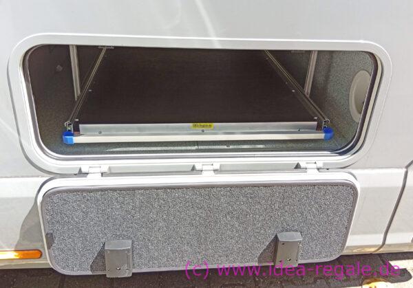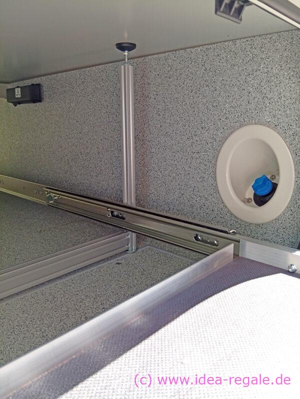 Hier wurde in einem Morelo Palace 88 LB ein Boxenregal mit Teleskopauszügen und ein Boxeregal ohne Auszug eingebaut