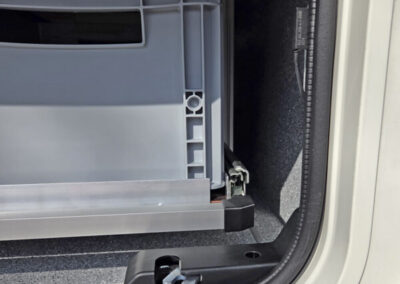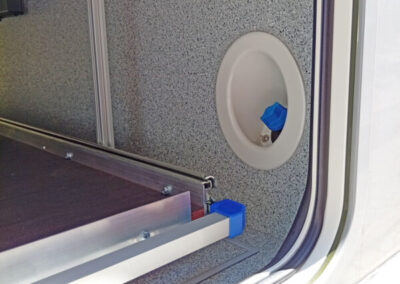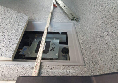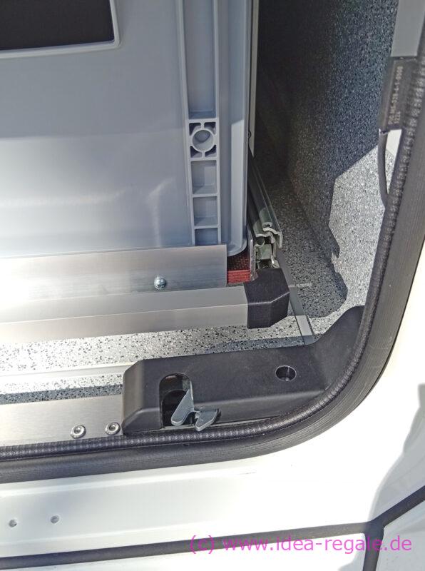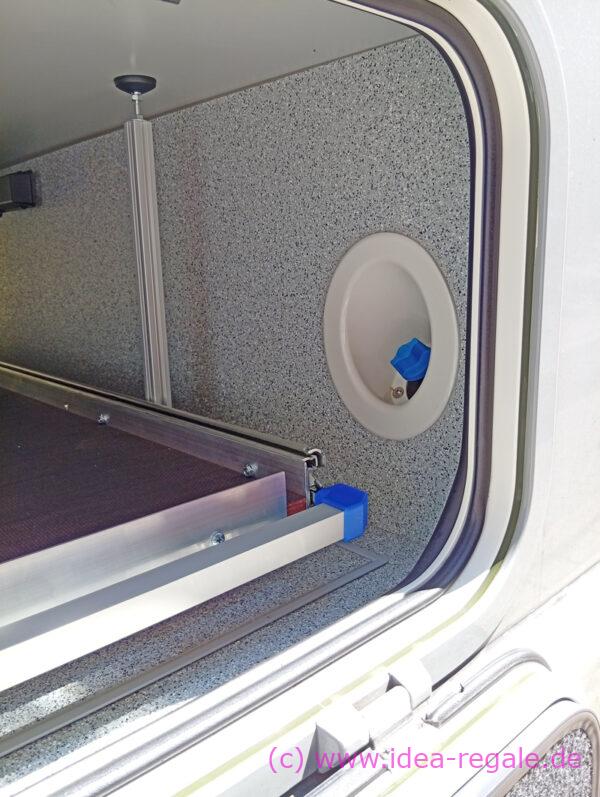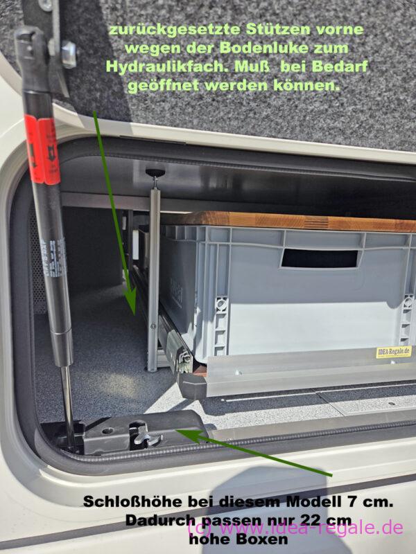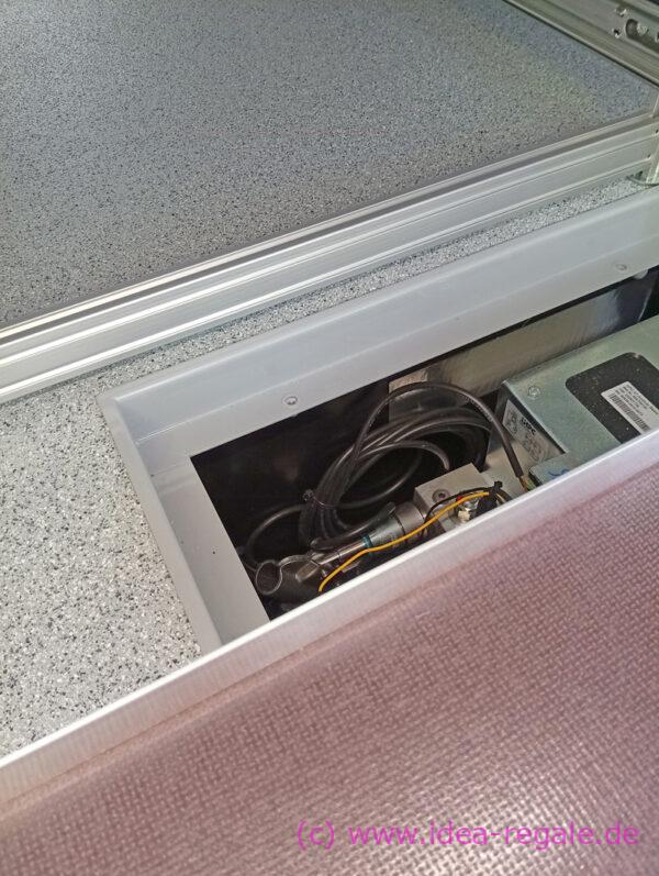 Da die Stauklappe auf einer Seite eingeengt war, wurde hier ein Unterflurauszug mit 150 cm Tiefe eingebaut. 170 kg Traglast