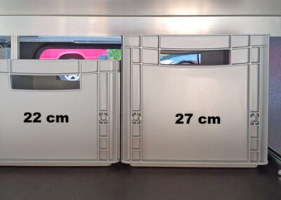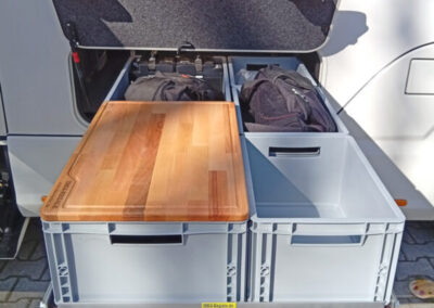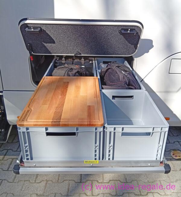 Auf der rechten SEite können zwei 60 x 40 cm Boxen ausgezogen werden