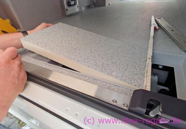 Hier hat unser Kunden seinen Küchenauszug Marke Eigenbau mitgebracht und wir haben diesen auf einen Schwerlastauszug XL mit 142 cm Tiefe und 250 kg Traglast montiert.