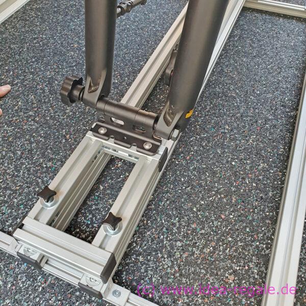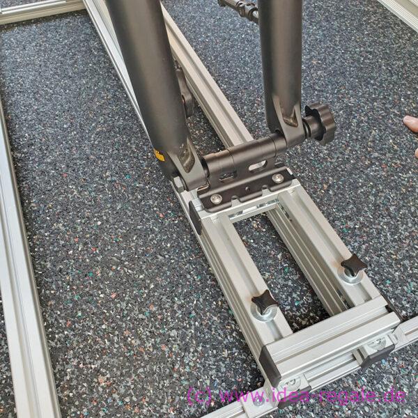 Wir haben nur noch eine spezielle Halterung für die Vorderradgabel angebracht, damit man das Rad einfacher einschieben und befestigen kann.
