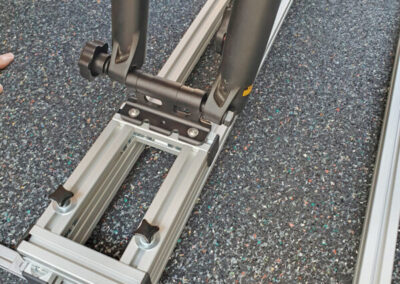 Pedi kompact Bikeinside mit Winkeln auf unserem Schiebeschlitten befestigt. Dieser kommt auch höher.