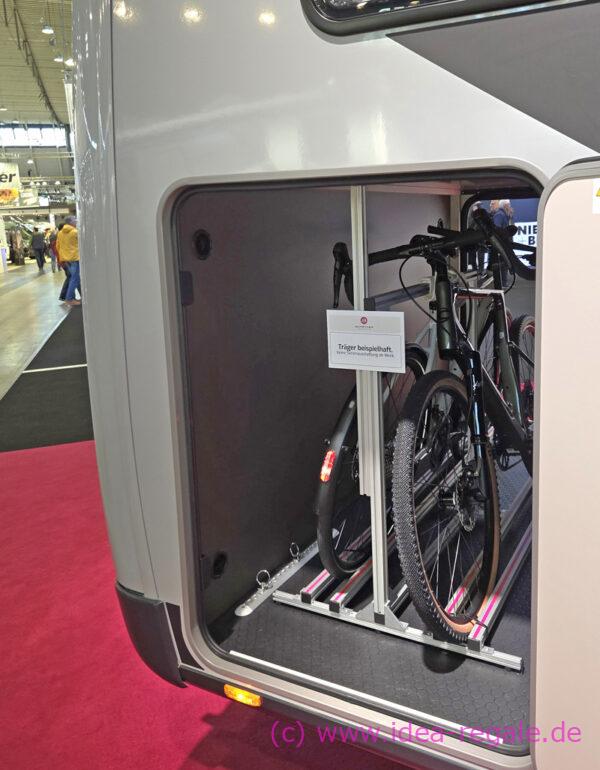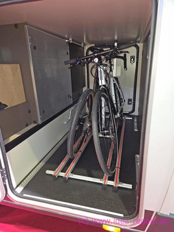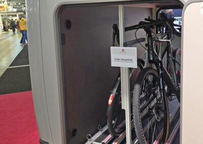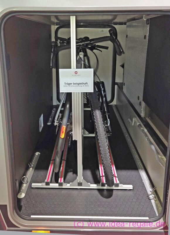 IDEA-SysTec hat seinen beliebten Pedi-Packer Fahrradträger weiterentwickelt und kann nun noch mehr unterschiedliche Einstellsituationen in der Heckgarage der Wohnmobile lösen.