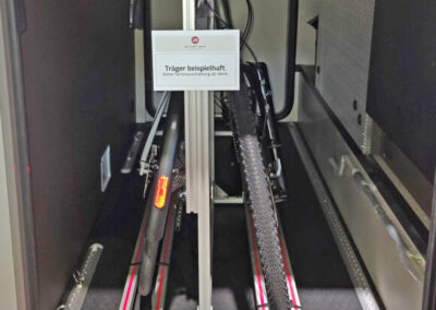 Mit dem neuen Modell Pedi-Packer-MT können die Fahrräder nun auch in schmale Heckgaragen eingestellt werden. Der Bodenträger wurde auf 60 cm verkürzt.