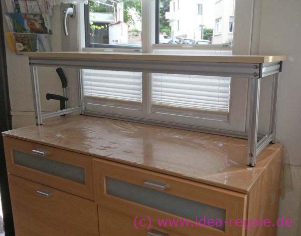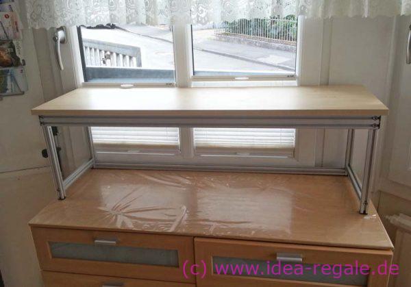 Hier mußten wir die Türöffnung Oben mit berücksichtigen, damit der Auszug unter der Decke heraus kommt. - - das ORIGINAL von IDEA-Regale