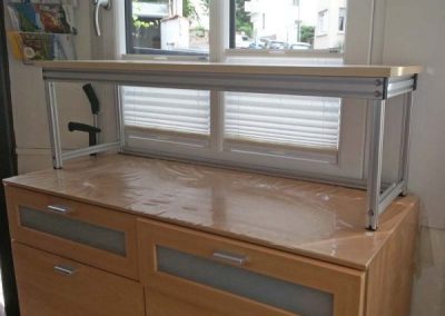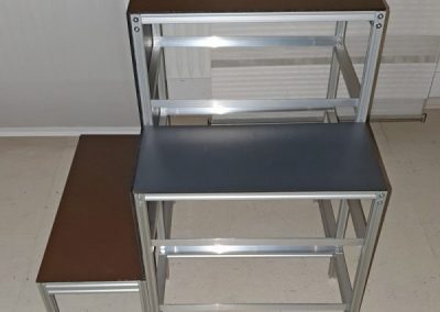 Für einen örtlichen Sportverein durften wir einen rollenden Barwagen fertigen. Dieser wird je nach Sportveranstaltung seitlich verkleidet und dient als mobil Barista-Bar. So kann der Sportverein seine Spieler und Gäste bedienen. Seitliche Gfiffleisten erleichtern das einschieben in den Anhänger und der Bartresen ist mit Rollen ausgestattet, die äußeren davon haben zusätzlich Bremsen. In der Mitte mit Teleskopschienen und daneben können Regalbrett eingeschoben werden.