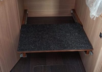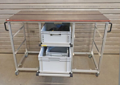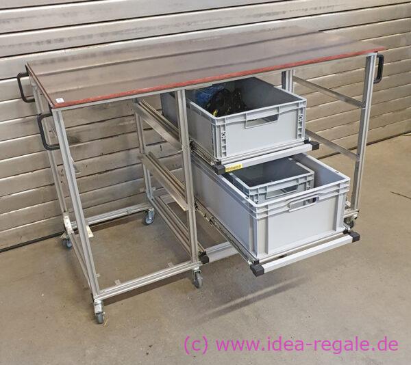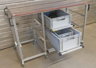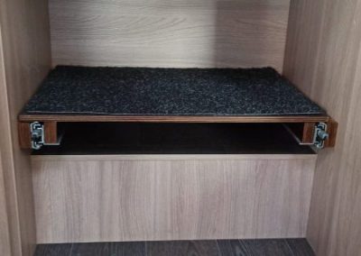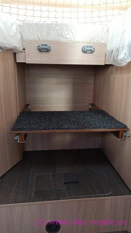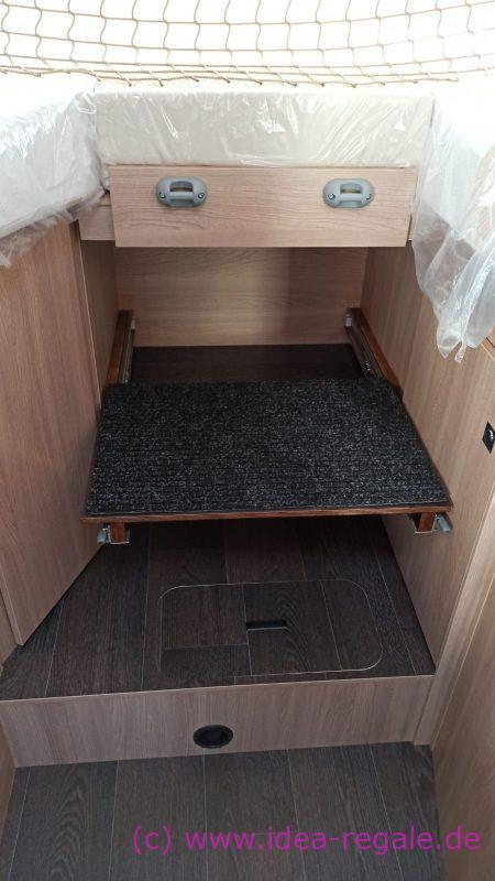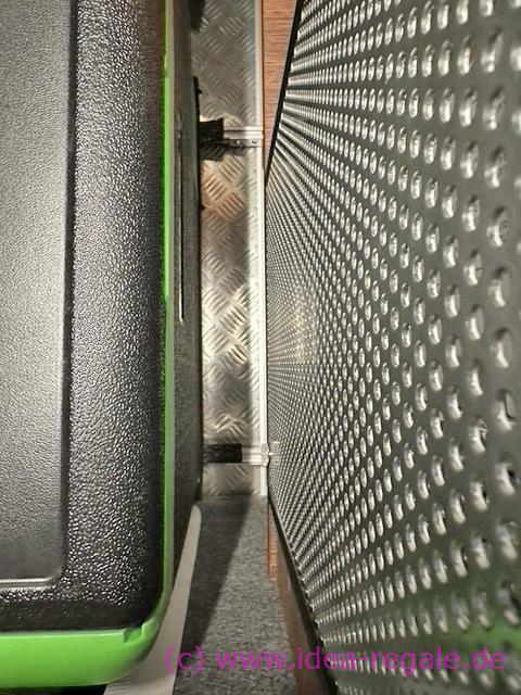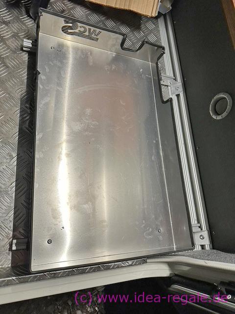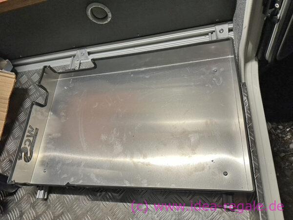 für eine weitere Box unter dem Gestell. Spart Platz und die Box kommt etwas höher. Kann man natürlich auch mit Teleskopschienen fertigen.