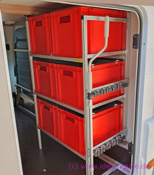 Boxenregal, Kurbelhalterung und Gerätehalter