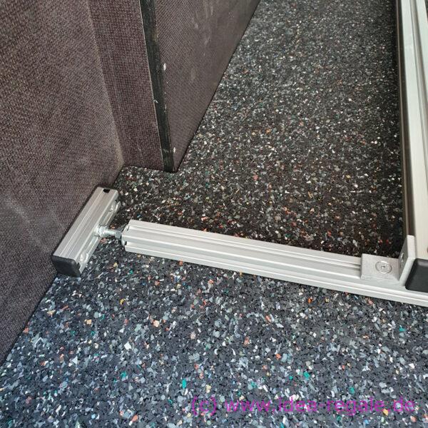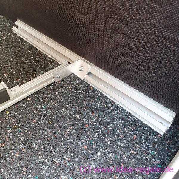 Das Boxenregal wurde mit vier Winkeln an der Thule Zurrschiene befestigt