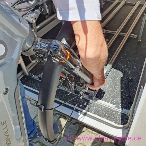 Adapter am Thule VeloSlide um die vorderen Räder zu entfernen