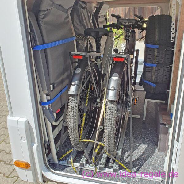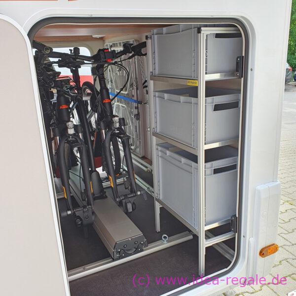 VCT Regal, Fahrradträger Pedi-Packer und Auflage darüber.