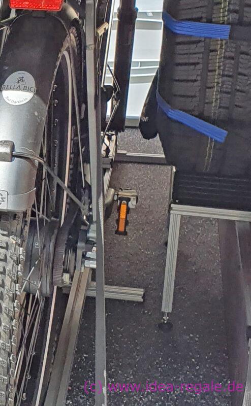 Am Hinterrad werden die Räder mit Arno Riemen gesichert