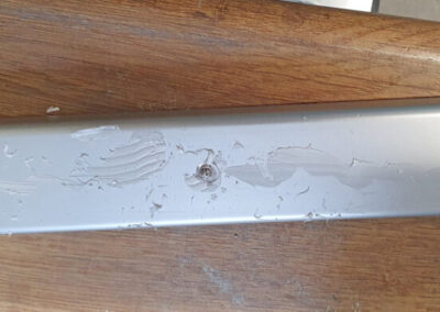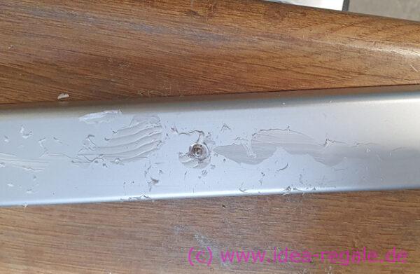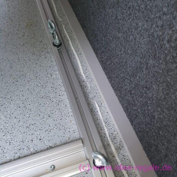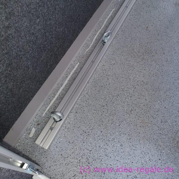 Hier hat der Kunde vor dem Einbau die Morelo Bodenschiene um ein paar Zentimer versetzt, neu verklebt und ordentlich verschraubt.